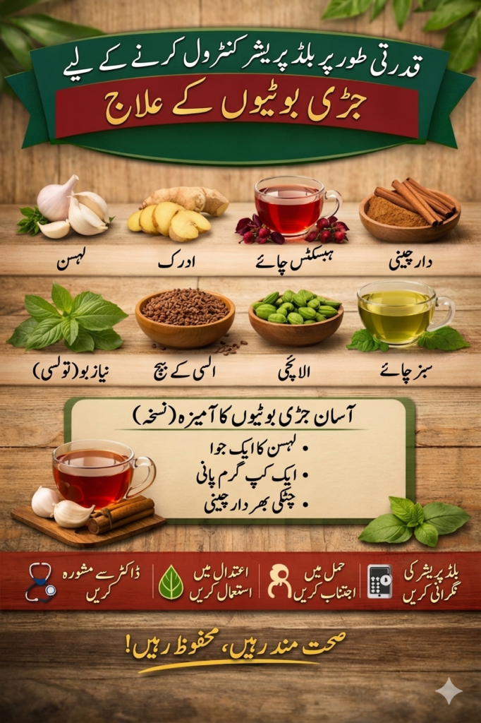 بلڈ پریشر کنٹرول کرنے کے قدرتی طریقے (جڑی بوٹیاں):