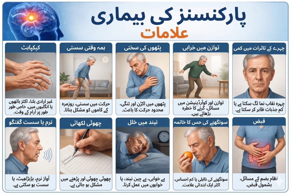 پارکنسنز بیماری ایک بتدریج بڑھنے والی اعصابی بیماری ہے جو بنیادی طور پر جسم کی حرکت اور توازن کو متاثر کرتی ہے۔ یہ بیماری آہستہ آہستہ اس وقت پیدا ہوتی ہے جب دماغ کے کچھ خلیے—خاص طور پر وہ جو ڈوپامین پیدا کرتے ہیں—کمزور ہو کر ختم ہونے لگتے ہیں۔ ڈوپامین ایک اہم کیمیائی مادہ ہے جو جسم کی ہموار اور متوازن حرکات کو کنٹرول کرتا ہے۔ جب اس کی مقدار کم ہو جاتی ہے تو انسان کو کپکپی، اکڑاؤ، سست حرکت اور توازن میں مشکل جیسے مسائل پیش آ سکتے ہیں۔یہ بیماری عموماً 60 سال سے زیادہ عمر کے افراد میں ظاہر ہوتی ہے، لیکن بعض اوقات کم عمر افراد بھی اس کا شکار ہو سکتے ہیں۔ پارکنسنز بیماری کی اصل وجہ مکمل طور پر معلوم نہیں، لیکن ماہرین کے مطابق یہ جینیاتی اور ماحولیاتی عوامل کے امتزاج سے پیدا ہوتی ہے۔ اگرچہ اس کا کوئی مستقل علاج موجود نہیں، لیکن بروقت تشخیص اور مناسب دیکھ بھال سے مریض کی زندگی کو بہتر بنایا جا سکتا ہے۔