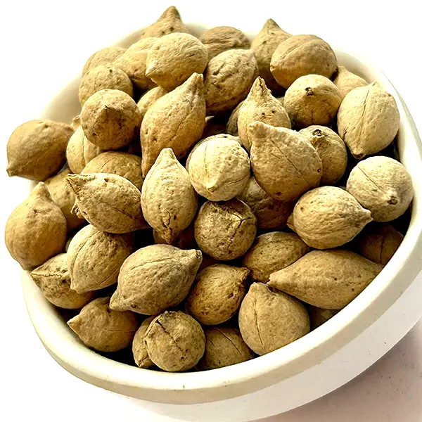 نرم ہونے کے بعد بیج کا بیرونی چھلکا اتار کر اندرونی گری حاصل کریں۔ - پیسنا: