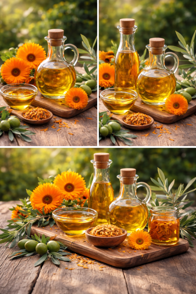 گلِ اشرفی اور زیتون کے تیل کو دیگر جڑی بوٹیوں کے ساتھ ملایا جاتا ہے، مثلاً: