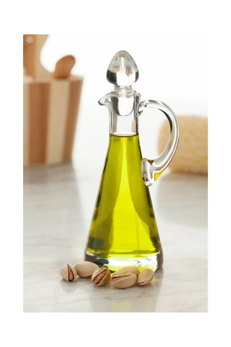 Pistachio oil is a nutrient-dense plant oil extracted from the kernels of the pistachio nut, scientifically known as Pistacia vera. This tree belongs to the Anacardiaceae family and is primarily cultivated in regions with warm, dry climates such as the Middle East, Central Asia, and parts of the Mediterranean.The oil is typically obtained through cold-press extraction, a mechanical process that preserves its bioactive compounds, natural aroma, and greenish-golden color. Pistachio oil has a mild, slightly sweet, and nutty flavor, making it suitable for both culinary and cosmetic applications.